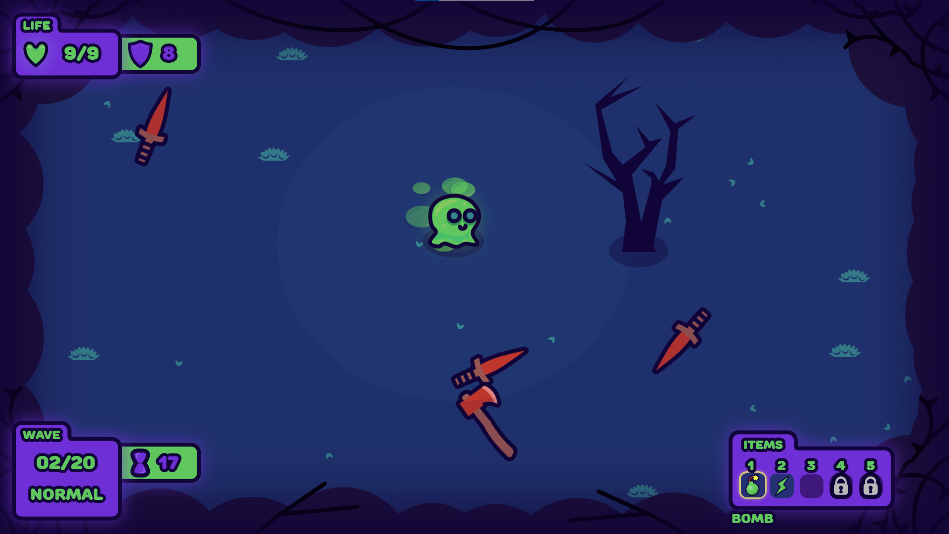 It started out as a small jam game around Halloween time with a simple premise. You're a cute slime that dodges knives, spiders, and ghosts in a spooky forest. I liked it so much that I turned it into a full game. I added more slimes, levels, enemies/projectiles, items, cards, meta progression, and achievements, and polished/balanced it to death.